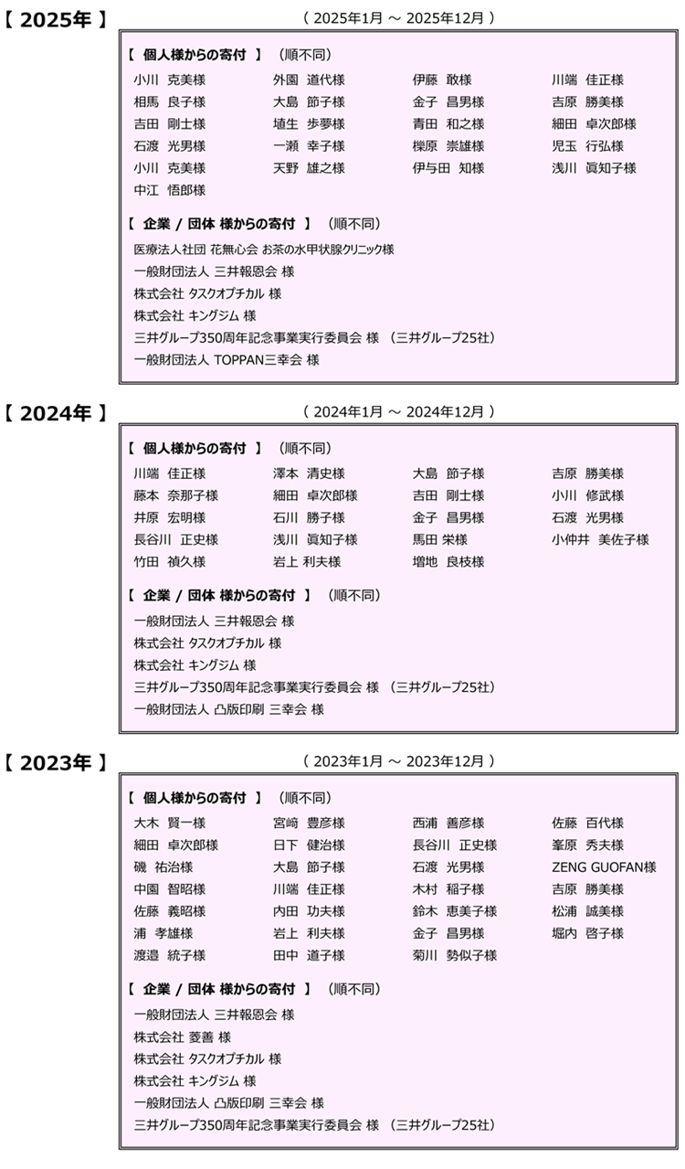寄付者のご芳名一覧