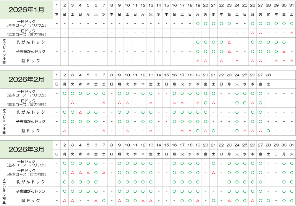 - 「○」は「予約可能」、「△」は「残りわずか」となっております。