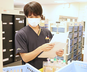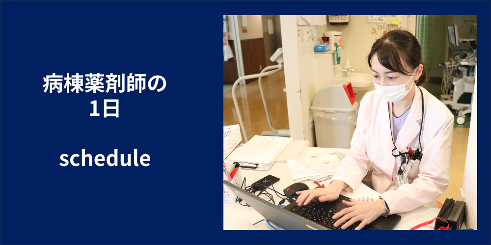 | AM10:00 | 入院した患者さんの持参薬の確認、アレルギー・副作用などの確認を行い、服薬指導を行います。 |