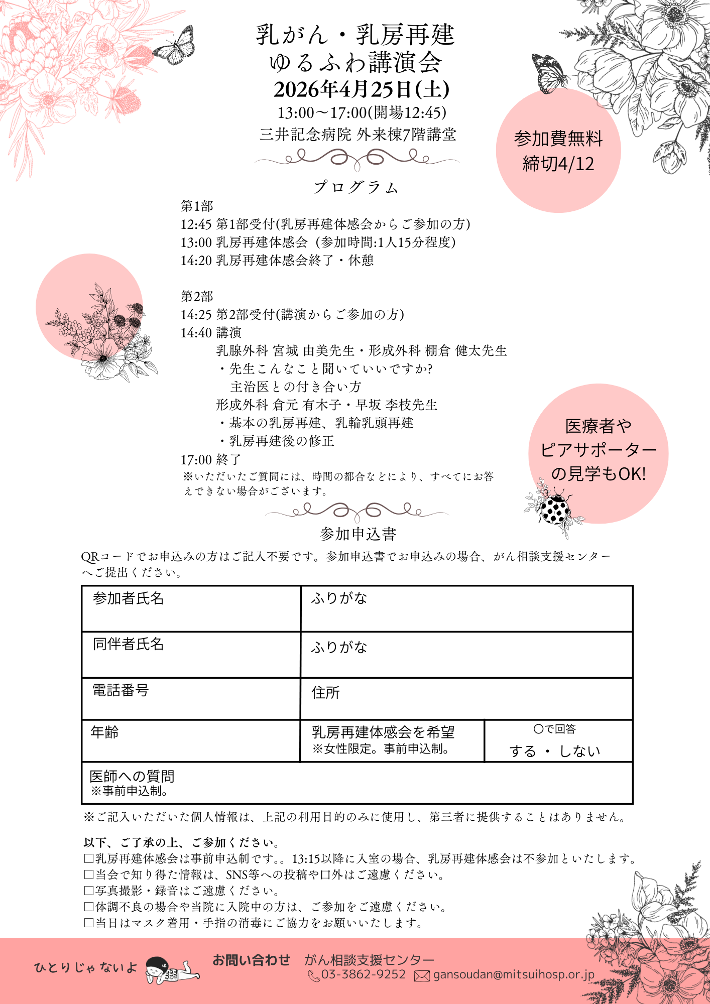 4月25日(土)乳がん・乳房再建講演会