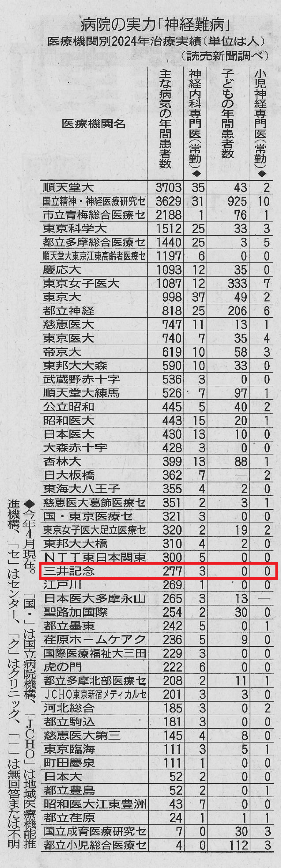 読売新聞 都内版(10月26日) 病院の実力「神経難病」に脳神経内科が治療実績のある病院として掲載されました。